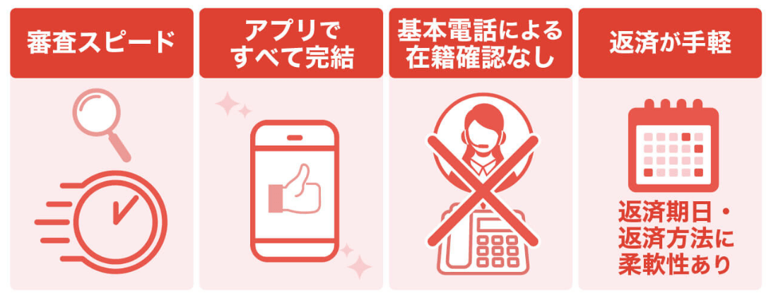原則、電話による在籍確認がない点や、申込みから取引までの素早さと手続きの簡単さが利用者から好評です。